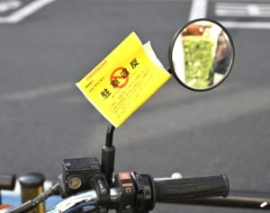 公道の駐禁場所にバイクが置かれていれば、客観的には「駐車違反の状態」です。