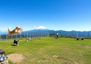 ドッグランは屋根に囲まれた遊び場の一角にあり、自然豊かな里山の風を感じながらワンちゃんを思い切り遊ばせられます。さらに、ペットOKのRVパークも併設され、愛犬と車中泊も可能。